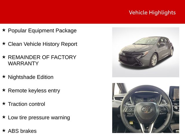 Experience the joy of driving with the 2024 Toyota Corolla Hatchback Nightshade. Visit our showroom today and let us demonstrate why this exceptional hatchback is the perfect fit for your lifestyle.