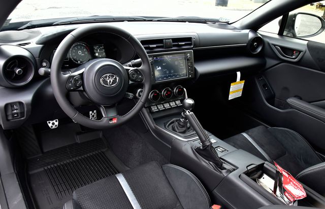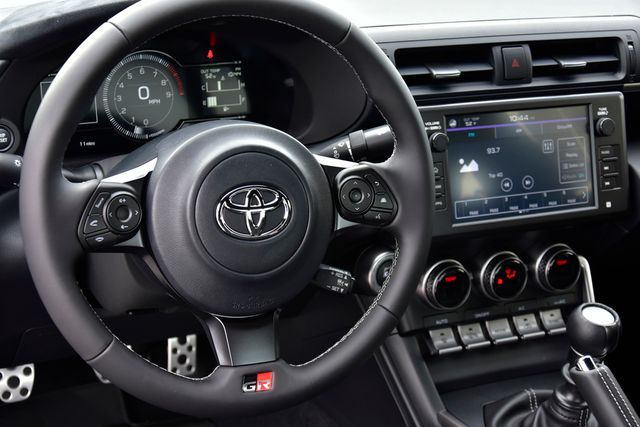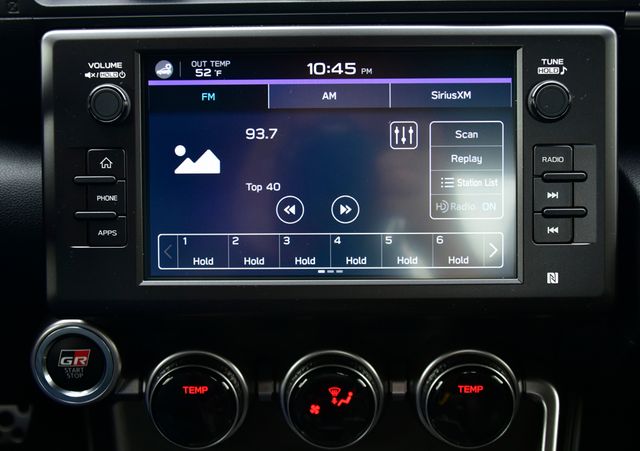 - GR86 Audio—includes 8-in. touchscreen, eight speakers including amplifier, Apple CarPlay® & Android Auto™ compatibility, SiriusXM® 3-month trial subscription. See toyota.com/audio-multimedia for details.