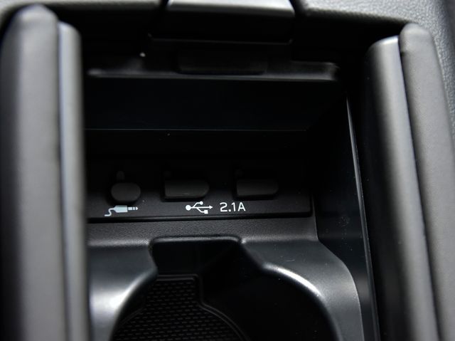 - Fixed center console with covered storage compartment with two front cup holders and two USB charging ports with auxiliary port