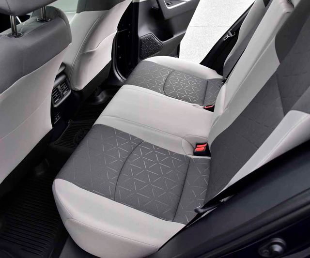 - Fabric-trimmed seats with embossed polygonal-design seat inserts; 8-way power-adjustable front driver's seat with lumbar support; 4-way adjustable front passenger seat with seatback pocket