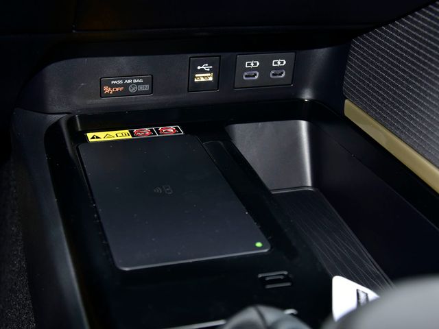 - Five USB ports: one USB-A media port and two USB-C charging ports up front, with one USB-A and one USB-C charging port in the rear