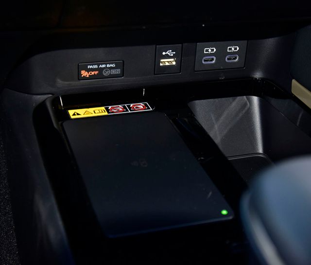- Five USB ports: one USB-A media port and two USB-C charging ports up front, with one USB-A and one USB-C charging port in the rear