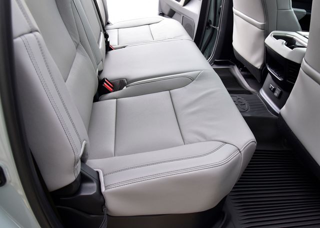 - Leather-trimmed seats with contrast stitching; 8-way power-adjustable driver and front passenger seats with power-adjustable lumbar support