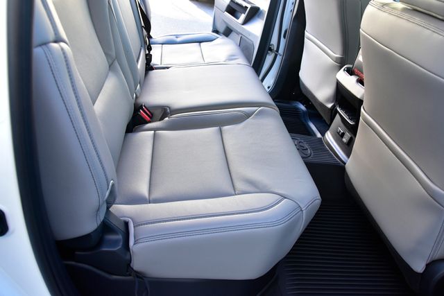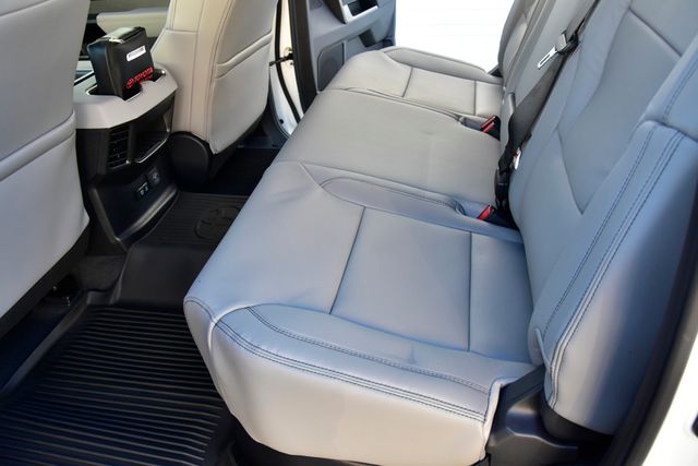- Leather-trimmed seats with contrast stitching; 8-way power-adjustable driver and front passenger seats with power-adjustable lumbar support