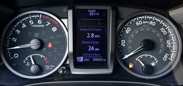 Inside, the Tacoma TRD Sport pampers you with premium amenities, including heated front seats, a power-sliding rear window, and an auto-dimming rearview mirror with HomeLink. The leather-trimmed interior and high-tech features create a sophisticated and versatile cabin that's perfect for both work and play.