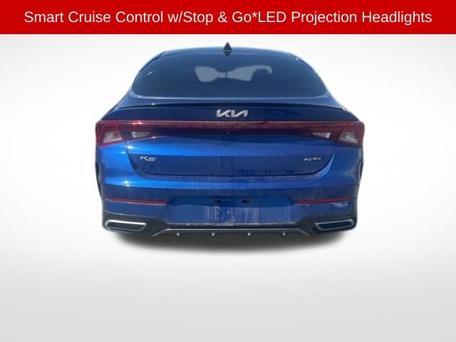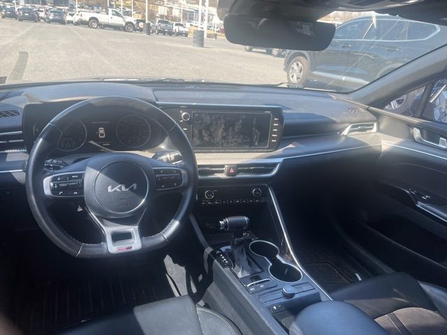 Step inside the 2022 Kia K5 GT-Line, and you'll be greeted by a well-appointed interior that combines style and functionality. The Premium Package includes a host of advanced features, such as a Navigation System, Panoramic Sunroof, and LED Projection Headlights, elevating your driving experience to new heights.