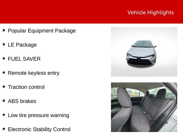 Beyond its exceptional performance, this Corolla LE is packed with a wealth of cutting-edge features designed to enhance your driving experience. The Remote Keyless Entry system provides convenient access, while the Traction Control and Electronic Stability Control systems work tirelessly to keep you firmly in control, even in challenging conditions.