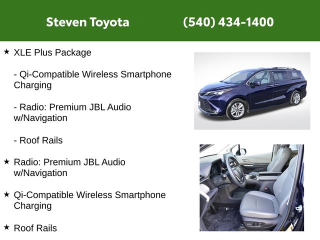 Indulge in the luxurious comfort of the XLE Plus Package, which includes features like heated front seats, a power driver's seat, and dual-zone automatic climate control. The Sienna's spacious interior, with its split-folding third-row seat and ample cargo space, ensures that you can easily accommodate your family and all their belongings.